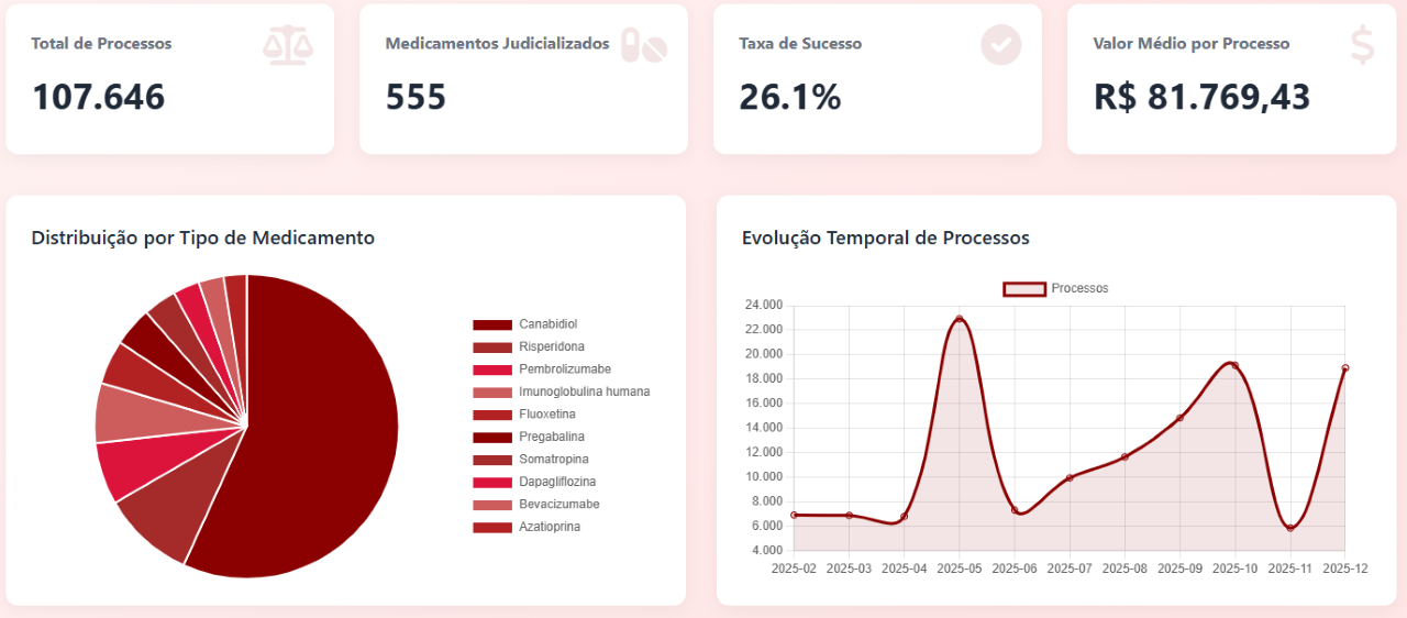Produzir conhecimento científico e tecnológico sobre a judicialização da saúde no Brasil, por meio da análise de dados judiciais com inteligência artificial, subsidiando políticas públicas mais equitativas e a gestão eficiente do SUS. O projeto integra pesquisa acadêmica rigorosa à aplicação tecnológica prática.